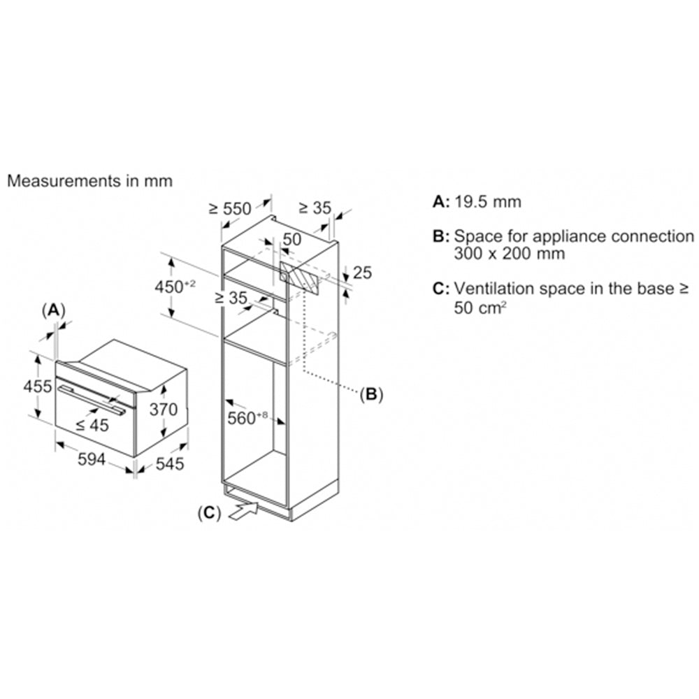 Bosch CEG732XB1B Series 8 Built-In Compact Microwave Oven & Grill – Black Powerful Precision, Compact Design