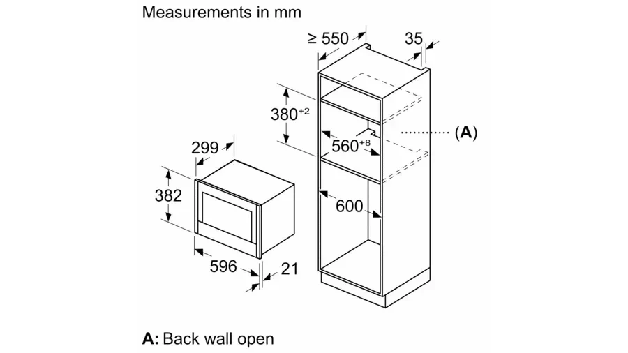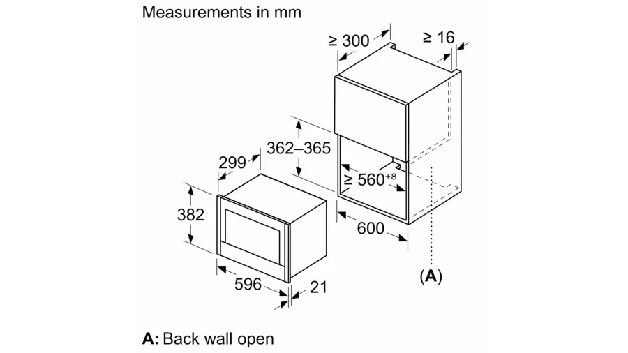 In terms of performance and technical specifications, the NL4WR21G1B operates at a nominal voltage of 220 - 240 V, with a total connected load of 1.22 KW. With a generous cavity volume of 21 litres, it offers ample space to fulfill your cooking needs. The appliance dimensions of 382 mm x 596 mm x 318 mm and niche dimensions of 362 mm - 382 mm x 560 mm - 568 mm x 300 mm make it suitable for various installation options, including frameless installation for wall units or tall housing.